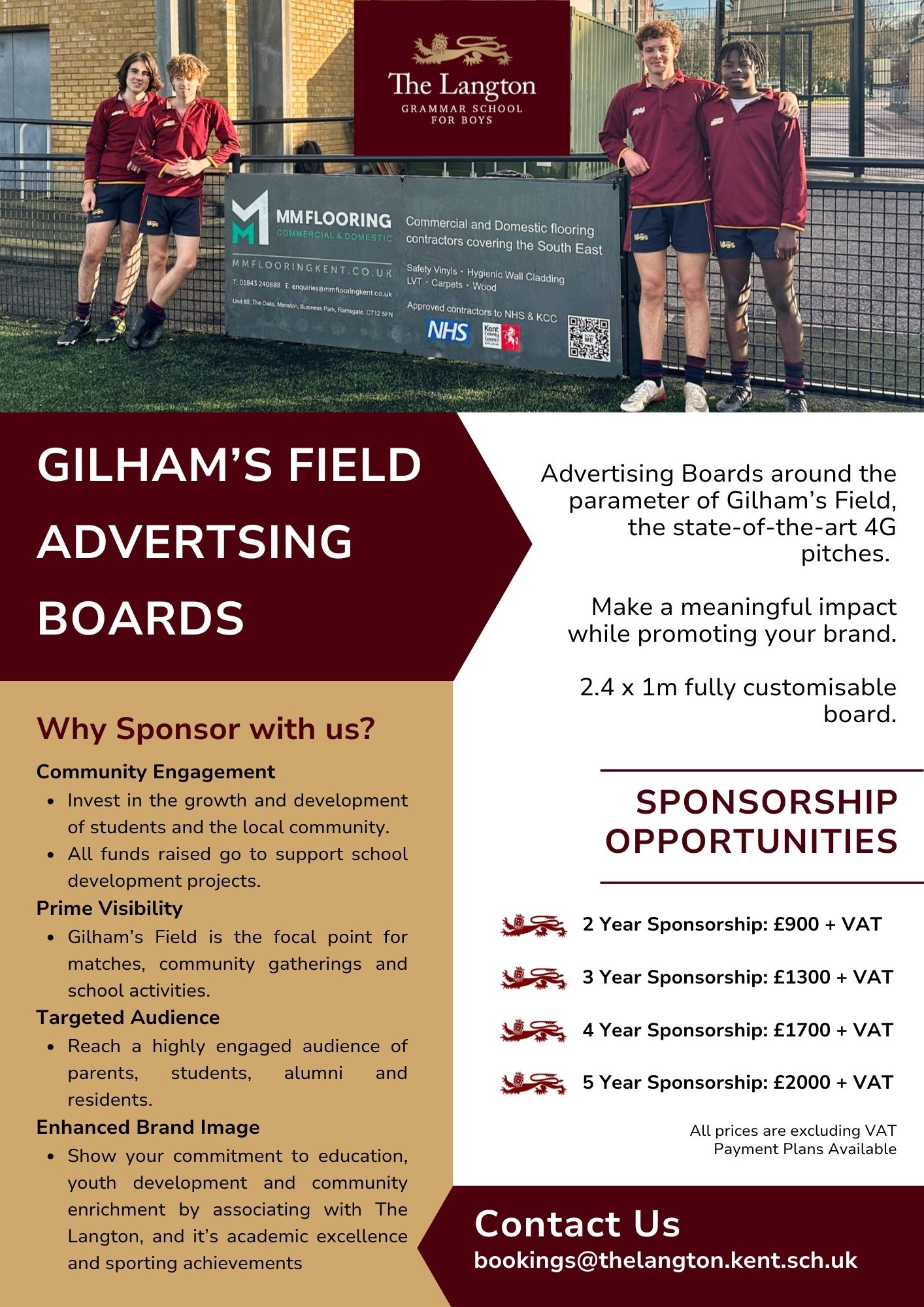 Advertising Boards around the parameter of Gilham’s Field, the state-of-the-art 4G pitches.
