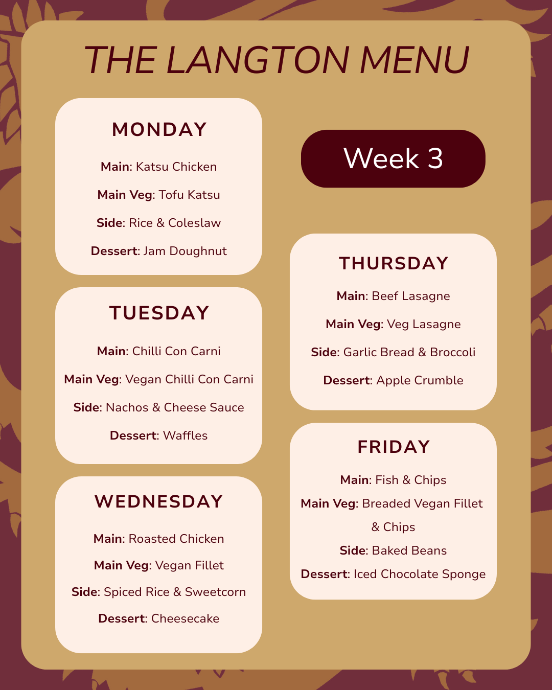 The menu for the main school canteen w/c 10th November (Week 3) is here