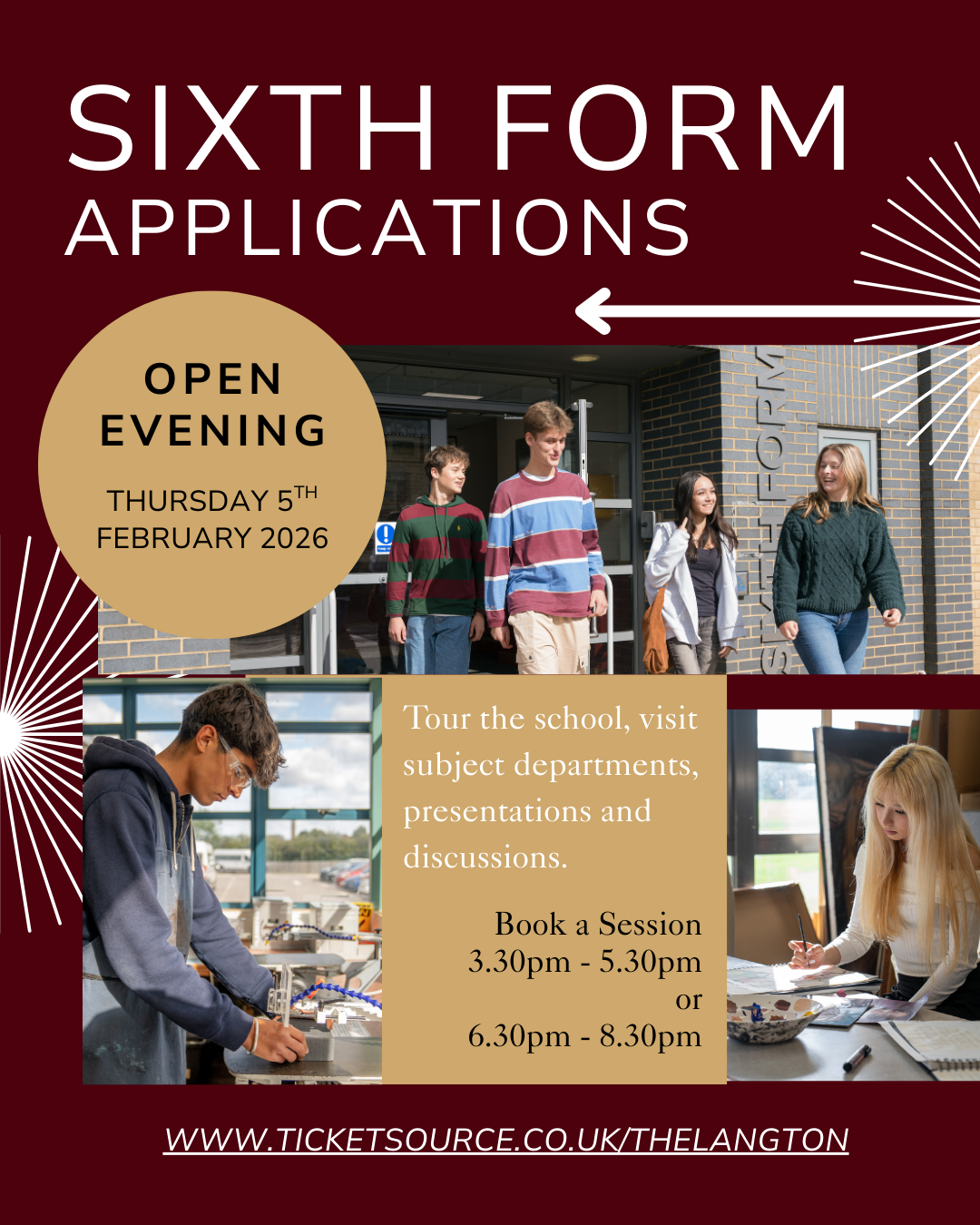 All Year 11 students considering joining our outstanding Sixth Form are warmly invited to our Open Evening on Thursday 5th February.